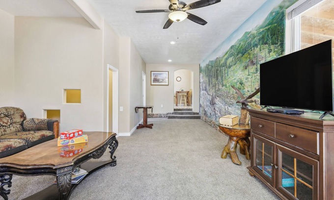 Get the most out of your next fun Utah getaway when you book this exciting Enoch vacation rental! With a stocked game room, private volleyball court, and close proximity to all of the area’s top attractions, ‘The Treehouse’ is perfect for entertaining everyone during your stay. The 3-bedroom, 1-bath cottage puts you minutes away from Cedar City sights including Frontier Homestead Park and the Utah Shakespeare Festival, as well as outdoor spots like the Dixie National Forest or Brian Head Resort!