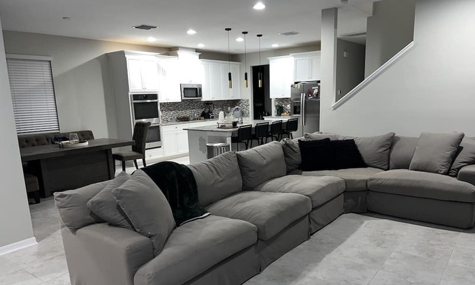 There is a community pool located at the front of the complex that will be available this summer. 3 bedrooms have bathrooms in the room. Two master bedrooms, one down stairs one upstairs. Spacious loft upstairs and living room down. Travel basinet available at no additional cost. *Home sleeps 12 persons comfortably. Discounts available for extended stays! Reach out today!