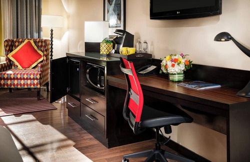 ✦ Your room is 453 sq. ft, equipped with complimentary toiletries, TV.