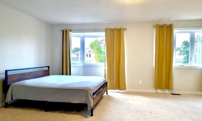 Discover a cozy sanctuary in Ottawa at 224 Twyford! Perfect for small families or couples, our spacious master bedroom on the first floor just 10 mins from Ottawa airport, and close to bus stops and malls. Book now for a peaceful stay!