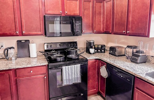 Prepare delicious meals in the fully equipped kitchen, featuring modern appliances and ample counter space.