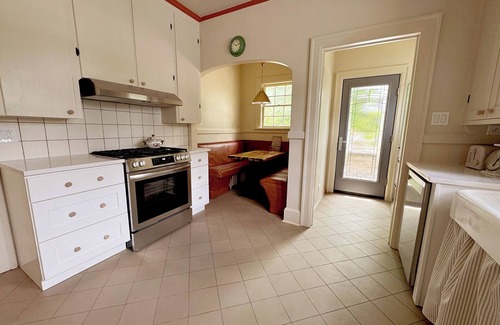 Highlights include a surprisingly spacious loft, secure fenced front yard, King bed in every room, vintage-inspired kitchen with a cozy alcove breakfast nook and a 600 sq ft basement game room!
