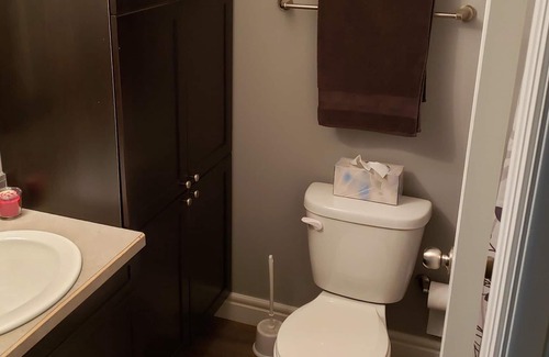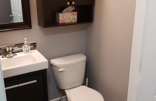 Quiet, cozy 3 bedroom 1516 sq ft half duplex is all yours for the length of your stay! Laundry facilities and use of the single car garage are included. A large deck out the patio door provides an opportunity for evening relaxation outdoors. One parking space off the front and a large parking area off the back alley are also included. The main level includes a dining area , living area, full kitchen with dishwasher and microwave. Upstairs you'll find a king-size bed in the master bedroom, with attached walk-in closet and ensuite. They are also two smaller bedrooms with queen size beds and closets. A large family area completes the upstairs of this spacious residence.