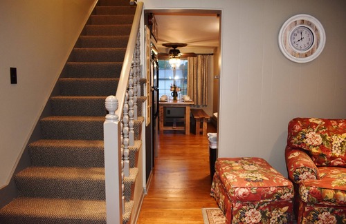 PLEASE NOTE:. This cozy cottage is comfy, super clean, and adorable. 3 bedrooms are on second story and are in close proximity to each other. These are not large bedrooms. 2 rooms have bifold doors, the twin beds room has an accordion door as the room divider. Again, please don't be surprised that they are not master suites. Space is perfect for a close family and/or adults who actually enjoy spending time together and are not looking for total privacy from noise. 1400 SQUARE FOOT SPACE INCLUDES LIVING ROOM, DINING ROOM, EAT IN KITCHEN, LAUNDRY//SITTING ROOM, 1.5 BATHS, AND 3 BEDROOMS. NOT LARGE BEDROOMS!