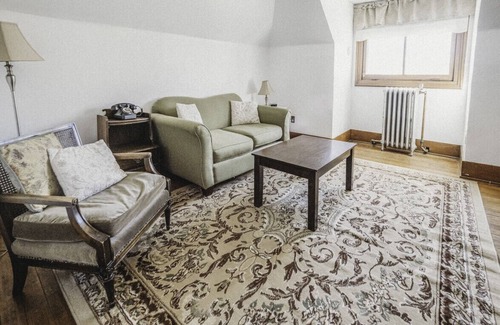 This unit includes the entire third floor of the home, and offers a queen bed in the main room, plus a sitting room across the hall that can easily sleep two more in our comfy roll away beds.