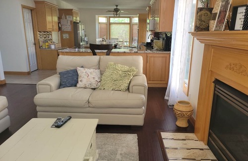 One and half modern house with man (or kid) cave in a daylight basement. Master suite with a king sized bed and whirlpool on first floor, three bedrooms up and two bedroom in lower level. Lower level has a bar, theater and kids playroom. Smart TV,s in all bedrooms. Total 13 beds sleeping spaces plus several reclining couches. Outside includes patio, grill and trampoline. Two car garage space available. Towels, soaps, coffee, snacks provided. Great kitchen. Laundry available. Located in the south east Lincoln.