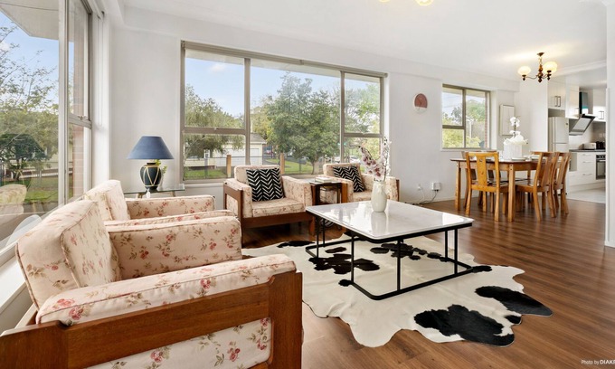 You ll love this large two story townhouse with mountain view, beautiful garden and fitted with all the comforts of a family home. The location is peaceful but incredibly convenient for both families and travelers. Shops, cafes and restaurants available with a short 5 minute walk. The Newmarket shopping centre, one of the largest in Auckland, is just 10 minutes walk away. Near the shopping centre is the metro which takes you to Auckland s city centre in just 15 minutes. The house has 2 levels which provides separate areas for guests who likes their own privacy. However, there is also a large lounge for those who like social activities. Overall, our house is great for couples, business travellers, and also families (with kids). The house is also opposite Diocesan school for any interested student.