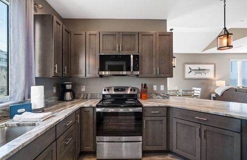 - Fully stocked kitchen with modern appliances and all the essentials for cooking and dining.