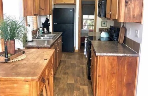All of our cabins have their own full bathrooms with shower and toilet and full kitchens except the Fawn and Bobcat whose kitchens only have a microwave and small fridge and sink.