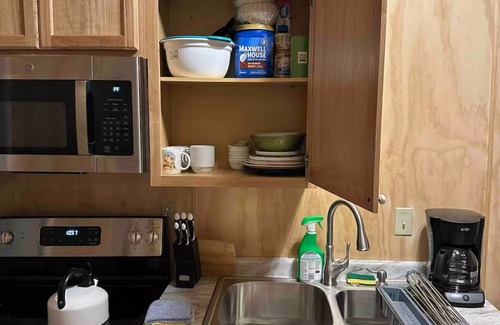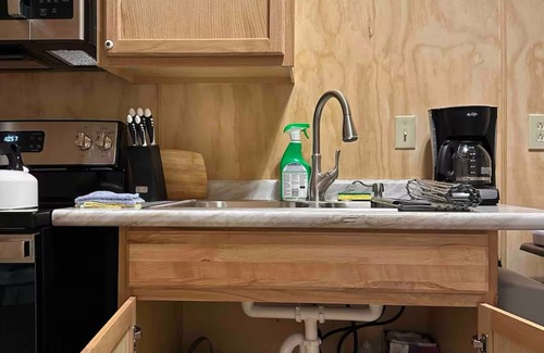 simple peaceful and centrally-located place. Newly build cabin ( Sept,2023) with 1 bedrooms ( queen size bed), 1 sofa bed , 1 kitchen with dining table, washer and dryer, 1 bath room.