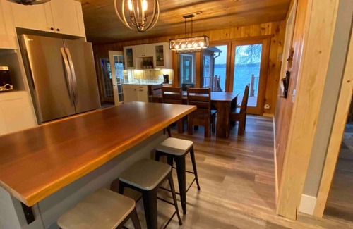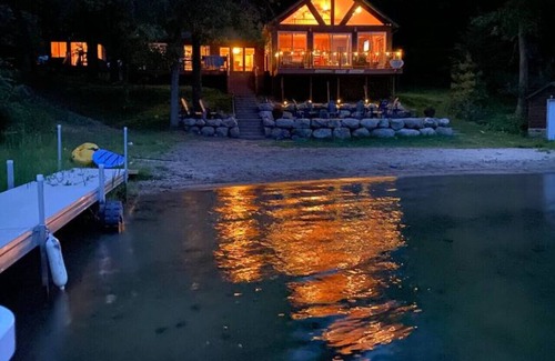 Enjoy your summer get away with your own private beach with 2 private docks. We have free use of a canoe, a kayak, 2 paddle boards or you can rent the pontoon for your stay. Extra chairs to sit around a campfire at night.