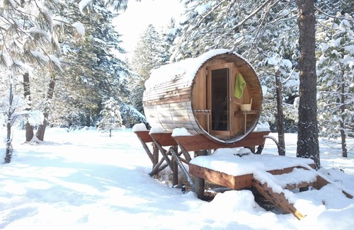 A contemporary, bright, beautifully furnished home nestled on rustic acreage of Ponderosa Pines. This is our family cabin and we hope that you will enjoy it as much as we do. The covered patio area is perfect for year round use. Original artwork and crafts are featured in every room. Poofy's Paradise is very private with beautiful views from every window.