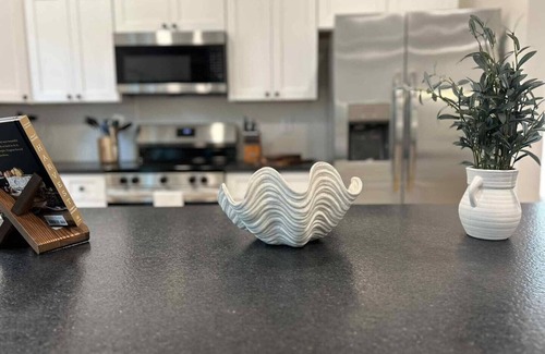 Inside, the home is styled with tasteful, modern décor and features a fully equipped kitchen with everything you need to prepare family meals or entertain with ease. Two private workspaces make this home ideal for guests who want to extend their stay, blending productivity with relaxation.