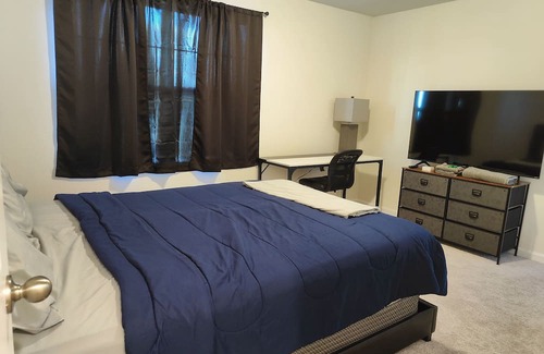 Enjoy a peaceful stay at this 2-bedroom house in DeLand. Step into this charming property and be enchanted by its delightful ambiance. The cozy bedrooms feature comfortable queen beds, ensuring a restful night's sleep for all guests. With amenities like AC, WiFi, a washing machine, heating, and a hair dryer, your stay will be convenient and hassle-free. The 2 bathrooms offer a bathtub and a hair dryer for your comfort. Whether you're exploring the city or simply relaxing at the house, you'll have a wonderful time in DeLand. Enjoy your time in DeLand at our enchanting house.