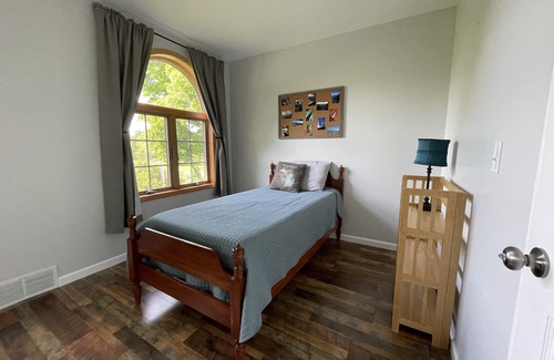 Grocery store nearby, beach, downtown Ludington, Lake Michigan, Hamlin Lake, rivers, all 10 minutes away. "Very large "commercial/chiefs" kitchen. Laundry. TV with Roku box and DVD. Bedrooms are 1 (very large) main level bedroom, which has a queen size bed, 2 twin beds, walk-in closet, and a bathroom just outside of the door. The upstairs level has 3 additional bedrooms, (1 queen room, and two twin rooms). There is also a half bath upstairs by the bedrooms.