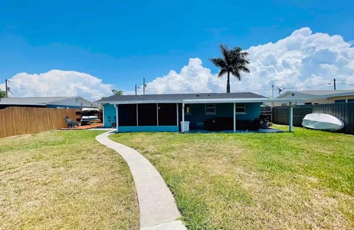 The Lazzy Turtle in Hudson Beach is a Florida Cracker style home with Terrazzo floors, canal home with direct access to the Gulf and a stunning area to enjoy the water life! The home is close to many restaurants and areas to enjoy SUNNY FLORIDA! This home has 2 bedrooms that can accommodate up to 6 guests, 1 bath, screened porch, boat dock, outdoor shower and a dedicated workspace. Quite neighborhood. The area is also a golf cart community. **Please look up any local laws prior to using a golf cart in the area**Guest access