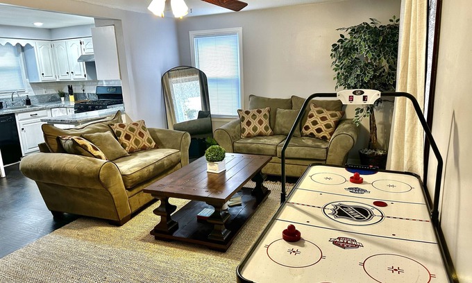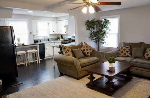 Welcome to our beautifully renovated 4-I bedroom, 1-bathroom house, with 5 total beds (2 queen, 2 double, and one futon bed). Centrally located for the ultimate convenience! This charming home is the perfect retreat, offering a seamless blend of modern comfort and accessibility to key attractions.