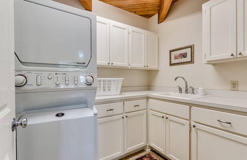 Both the dining room and living room have spectacular views of the yard and reservoir (usually full from spring through fall) with vaulted ceilings. Kitchen features include large refrigerator/freezer with ice maker, ceramic glass top stove and Bosch dishwasher. Plenty of cabinets and storage.