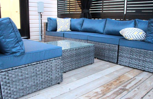 Step outside to enjoy the large deck with beautiful patio furniture that can comfortably seat up to seven people. While using the deck, enjoy a hassle-free cooking experience with a barbecue connected directly to a gas line, so you never have to worry about an empty propane tank.