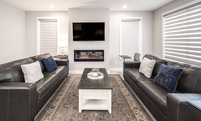 Living rooms with fireplace, two smart TV(Netflix Etc.) and genuine leather couches(one can be pulled out) and reclining couches
