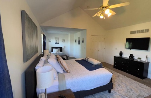 Set in Olathe, just 35 km from National World War I Museum at Liberty Memorial, Entire Luxury Private Properties - With High 1Gig internet offers accommodation with free bikes, a shared lounge, a garden and free WiFi. This property offers access to a patio and free private parking. This air-conditioned holiday home is fitted with 6 bedrooms, a cable flat-screen TV, a dining area, and a kitchen with a dishwasher and a microwave. Towels and bed linen are featured. The holiday home offers a range of wellness facilities including a hot tub and a sauna. A terrace is available on site and cycling can be enjoyed within close proximity of Entire Luxury Private Properties - With High 1Gig internet. Kansas City Convention Center is 36 km from the accommodation, while Union Station Kansas City is 36 km away. The nearest airport is Kansas City International Airport, 63 km from Entire Luxury Private Properties - With High 1Gig internet.