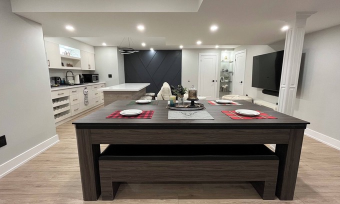 Escape to our cozy basement apartment and enjoy a tranquil retreat. Guest can enjoy the entire 1200sqft spacious private space with bedroom, ensuite bathroom, gym, living room, kitchenette with all amenities. While our kitchenette doesn't include a full size stove, but we do have an electric plug in stove available for light cooking.