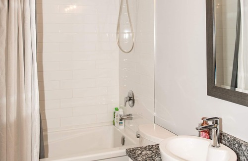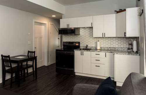 Enjoy a comfortable one bedroom modern guest suite with a fully equipped kitchen, bathroom with tub and shower, living space, and private separate entrance. Laundry is not in suite but available upon request.