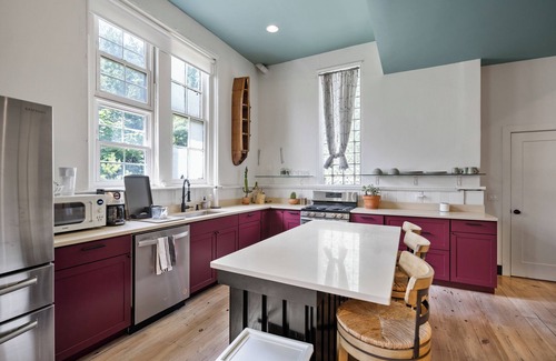 Welcome to our beautifully renovated 1866 church, located in the up and coming West End neighborhood of Cincinnati. This unique property has been carefully transformed into a stunning space that comfortably accommodates up to 8 guests.