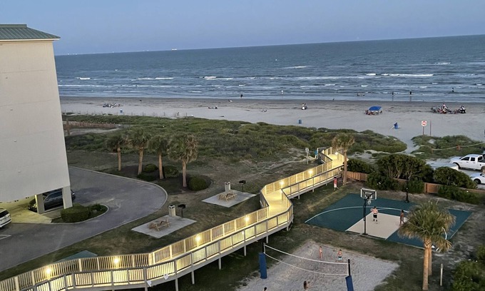 Entire Resort Condo 2bed/2Bath sleeps 8 w/infinity pool overlooking the beach is located in Galveston. Entire Resort Condo 2bed/2Bath sleeps 8 w/infinity pool overlooking the beach provides accommodation, featuring Air Conditioner, Bedding/Linens, Child Friendly, among other amenities. This Resort features Air Conditioner, Bedding/Linens, Child Friendly, to make your stay a comfortable one.