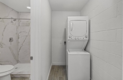 * Brand New Everything: Step into a completely renovated space with 100% new features – from secure doors to elegant tile flooring, sleek quartz countertops, high-end stainless steel appliances, and a stackable washer/dryer.