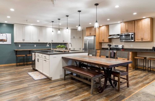 Mountain views surround this unique lodge nestled in the heart of the western slopes of the Teton Range. There are 3 separate 2-bedroom suites in this beautiful lodge with an adjacent 2-bedroom apt, sleeping up to 30. The Teton Crest Lodge also boasts a huge great room with large dining and living areas and double kitchen, plus a laundry room.