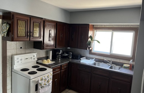 Entire unit on the main floor with 2 Beds. It’s located in the centre of the city. Close to all amenities and shopping centre within walking distance. Self check-in thru access code. Laundromat located next door. Hot water on demand. Fast wifi. Netflix. Bus route across the road. Free Parking in the back. And an Enclosed front porch with a nice view to maximize enjoyment.