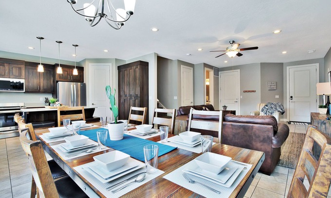 Make your new favorite memories in this luxurious and professionally decorated pet-friendly** vacation rental in Moab vacation home with 4 bedrooms and 3 baths! Its amazing amenities and close proximity to downtown and outdoor adventures make it the ideal place to stay during your vacation in Moab. In the warmer months, experience hiking, biking, kayaking, parks, and other exciting activities by day, then settle into your well-stocked, exquisitely decorated Moab vacation property at night with its open floorplan, community pool and spa, and comfortable entertaining and sleeping accommodations. In the colder months enjoy lower rates and less crowds with cross-country and backcountry skiing, winter hiking, winter biking, and shopping just a short distance away!
