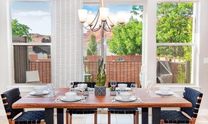 Best-rates for the Moab house starts from $1,619 per night with includes Parking, Pet Friendly, Pool, Wellness Facilities, Fireplace/Heating, Child Friendly, Internet, Security/Safety, Sports/Activities, Skiing, Hot Tub, Laundry StayAndPlay offers fully equipped golf villas, golf hotels, golf resorts, luxury golf cabins, and exclusive golf retreats, making it easier than ever to find your perfect golf escape — ideal for families, peaceful getaways, or pet-friendly retreats with the whole crew.