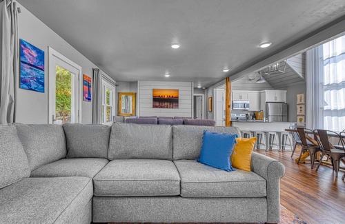 Welcome to Westeros, hosted by Simple Life Rentals! Renovated in 2017, this one of a kind property offers 2 homes within one for up to 24 guests to enjoy comfortably. The south side accommodates 14 people in 4 bedrooms and has 2 bathrooms, a fully equipped kitchen, and a spacious living area. The north side accommodates 10 people with 3 bedrooms, 2 bathrooms, a fully furnished kitchen, and a living area. This home is perfect for hosting multiple families and gives immense flexibility. Additional amenities include an open-concept common area with a large farmhouse table. With 4,000 square feet, you will find the home spacious with many options for lounging and hanging out. The 1.5 acre yard offers 2 patio areas, a grill, and lots of outdoor seating.