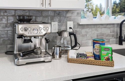 Enjoy provided tea and coffee with our Breville Coffee Machine.