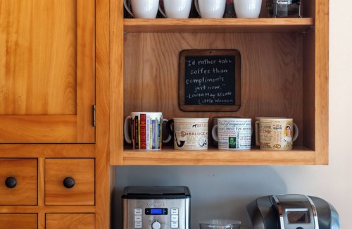 -Well equipped kitchen with coffee bar and views from the table that will leave you lingering. Cozy and bright sitting area with overstuffed chairs.