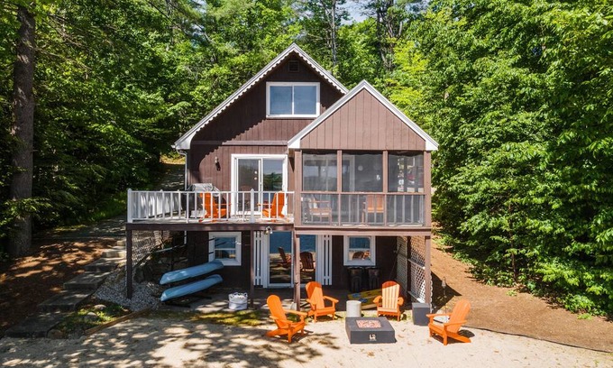 - Stylish lake home with private beach, dock and firepit for swimming, kayaking, hiking