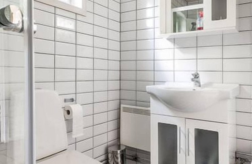 "Erikstorp Fyran", 3-room house 88 m2. Object suitable for 6 adults. Tasteful and cosy furnishings: living/sleeping room with 1 double sofabed, Scandinavian wood stove and satellite TV. Exit to the veranda. 1 room with 1 double bed. 1 room with 2 beds. Open kitchen (4 hot plates, oven, microwave, freezer, electric coffee machine) with dining table. Shower/WC, Sauna. Electric heating. Wooden floors. View of the lake. Please note: non-smokers only. Freezer approx. 100 l. Only allowed to use the owners wood for the fireplace.