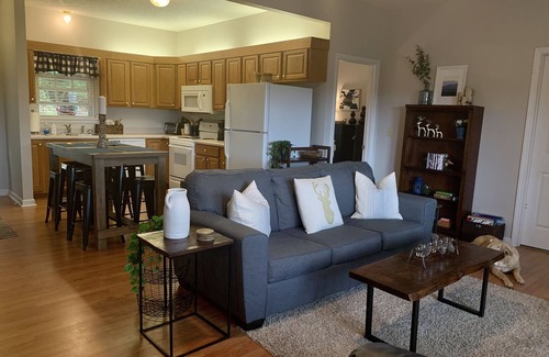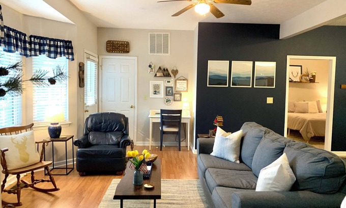 You'll want to enjoy each morning cup of coffee from here. Features include a large, well-stocked kitchen and comfortable living area with a pull-out sofa bed, desk (if work absolutely can’t wait!) and gas fireplace. The kitchen seats four at a pub-style table and features a Keurig machine, Crock Pot, and all that you need to make a meal at home. Choose between two beautifully decorated and well-appointed bedrooms - the deer room with full bath, garden tub and large walk-in closet or the mountain room with a full bath. A washer and dryer is available for use in the laundry room. Situated at the top of Ski Mountain, you’re almost as close to the slopes as it gets. The Blue Ridge Parkway less than 5 minutes away, downtown Blowing Rock less than 10 minutes and downtown Boone less than 15 minutes. Tweetsie is so close you can hear it's whistle of this much-loved area attraction. You'll smile each time you hear "choo choo!" You’re close to all that this incredible area has to offer or you can stay in, enjoy the beautiful home and take in the views, mountain breeze, and sounds of nature. We look forward to sharing our home with you!