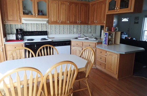 *House Details: Spacious & full of light modular home with 3 bedrooms; 2 with queens & 3rd with queen sofa sleeper with new foam mattress, 2 baths (1 private bath off front bedroom with tub & shower, 2nd full bath with walk in shower), living room.