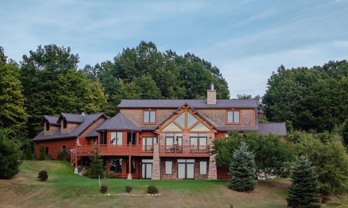 Welcome to the Red Cabin Retreat! Take hold of the abundance of entertainment, luxury, and ambiance of this 6400 Sq. Ft, ski lodge-type home. The log cabin and its ambiance are perfect in all four seasons. Minutes away to the famous Silver Lake State Park and coastal Lake Michigan activities. Amenities include a wrap-around porch with breathtaking views of Silver Lake Sand Dunes and western Michigan sunsets over Lake Michigan, towering stone fireplace in the den, gourmet kitchen needing its next Chef with double-sized refrigerator, large master bedroom and custom bath suite with rain forest shower. Every room holds a unique style with custom made log beds. The lower level contains the incredible entertainment level with a hand-crafted wet bar/pub with beer taps; eleven seat recliner chair in large theatre room, poker table, signature series pool table, ping pong table, and foosball.