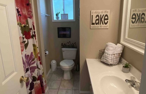 The open concept living area, with its floor-to-ceiling windows, provides the perfect setting to relax and take in the beauty of your surrounds. .The spacious deck, complete with a grill and outdoor furniture, its the perfect spot to enjoy a meal or a glass of wine as the sunsets over the water. In the morning, wake up to the sounds of birds chirping and the sight of the sun rising over the mountains in the distance. With 4 bedrooms and 3 bathrooms. there's plenty of space for you and your guests to spread out and relax. The fully-equipped kitchen is perfect for cooking up a delicious meal, and the cozy fireplace provides the perfect ambiance for a relaxing evening in. Where you're looking to take a dip in the lake, hit the trails for a hike, or simply sit back and relax, our lake view, Sunrise Inn, has something for everyone. Book your stay today and experience the beauty of nature at its finest!