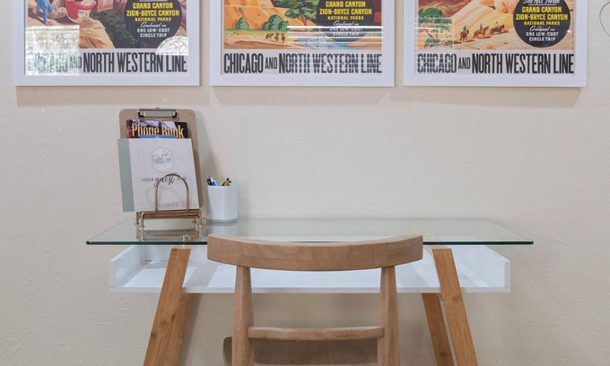Dedicated Workspace: A comfortable desk with a guestbook and high-speed fiber internet—the best in the area.
