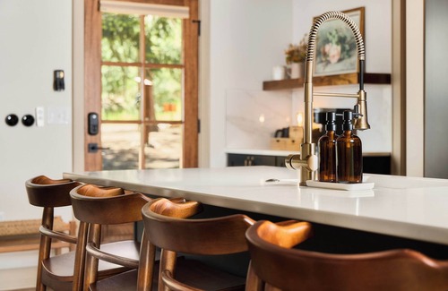 RiverHouse South, there’s a river in the backyard next to the private hot tub and sauna, what more could you need?! If you love watching local wildlife, listening the sound of the creek with a cup of coffee in hand, and relaxing on a luxurious back patio that’s perfect for all seasons, then you should probably book here. Enjoy the full amenities of a kitchen stocked with a curator’s touch, heated towel rack, remote control gas fireplace, gas grill, 2023 top-to-bottom remodel. Book RiverHouse South before someone beats you to it!