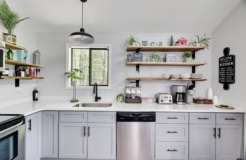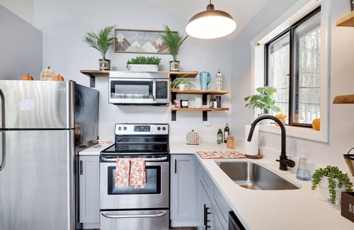 The main level boasts a spacious, open floor plan that’s perfect for entertaining. Enjoy the modern kitchen equipped with new appliances and a cozy coffee bar, ideal for morning brews. The large dining area flows into a small family room that opens up to a spacious deck, perfect for outdoor gatherings. For those cool evenings, the home features two wood-burning stoves, adding warmth and charm. Plus, a fire pit in the backyard enhances the vacation experience, making it easy to unwind under the stars. This home truly offers a blend of comfort and style!