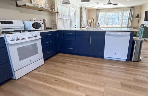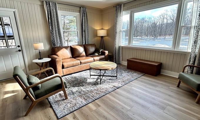 Unwind at this cozy, newly remodeled hideaway on the Kankakee river, perfect for a peaceful family getaway. Enjoy fishing, kayaking (2 provided), grilling on a Weber, and relaxing by the bonfire. This 2BR, 1BA retreat sleeps 6 with a pull-out couch. Nestled on dead end road, its one mile into town to enjoy parks, restaurants, bars, and shops. Only 50 miles from Chicago, it’s an ideal escape. Need more space? Book the Historic remodeled farmhouse down the road that sleept up to 12 more guests!