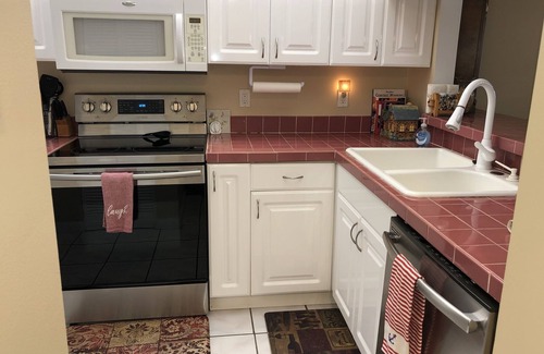 The fully-furnished kitchen (should you choose to cook and skip the many walking-distance inexpensive restaurants) comes with fridge-freezer especially equipped with filtered water & ice in the door, ultra-quiet dishwasher, new self-cleaning oven and built-in microwave. You have full use of a new Vitamix, coffee-maker, toaster, blender, 'Forman' grill as well as a full array of skillets, pots & pans, crock pot, cookie & pizza trays, salad spinner & even a Lobster Pot!