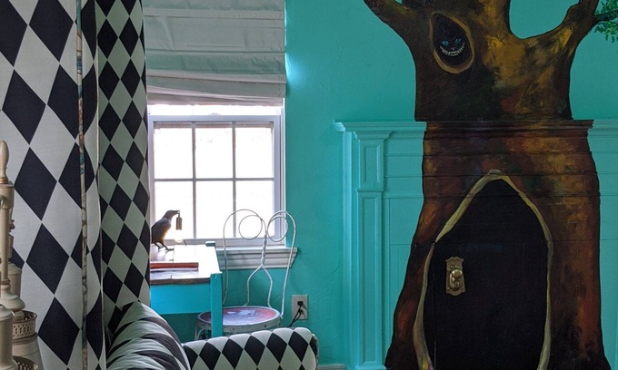 Take a trip down the rabbit hole in this Alice in wonderland inspired house. Meet woodland creatures and sit for tea. Unique artwork and a chair fit for the queen. Hidden secrets await. Why is a raven like a writing desk, do you know? This house is centrally located to downtown (bricktown) VA and OU children's hospital, zoo, Myriad Gardens, the civic center, art district, remington and much much more. Be on the interstate in 2 mins and start your adventure in Oklahoma City.