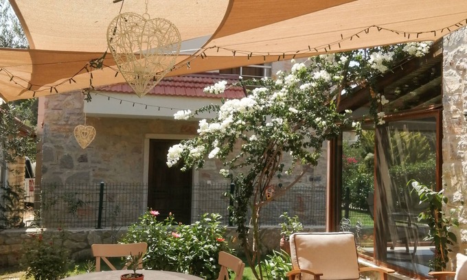 Our house is located to one of the most quite and peaceful place of Eski Datça. It is only 100 mt away from the shops and restaurants. Our house is magnificent villa has full equipment open kitchen( built-in double fridge, microwave, cooker on island), 2 bedrooms, a bathroom with a water heater, winter and summer garden. The balcony of the bedroom has a valley view. You can have a pleasant time with a comfortable sitting group in our summer garden and enjoy a barbecue party.